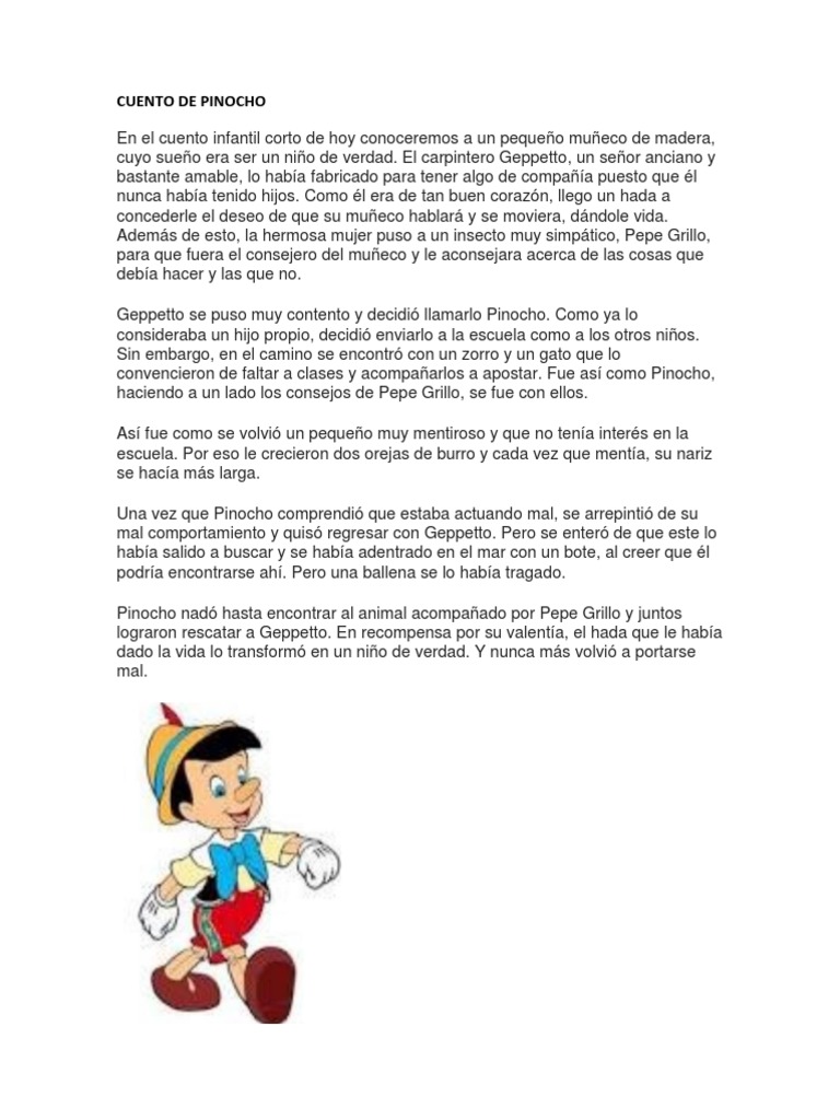 Descubre el cuento de pinocho un cuento corto que apasionará a los más pequeños de la casaen el vídeo del cuento corto de pinocho los niños sabrán cuál es la historia de pinocho. Cuando aquel monstruo marino cerró la boca todo se quedó oscuro. Se trata de una enseñanza que les hará reflexionar y sobre todo que se lo piensen muy bien antes.
